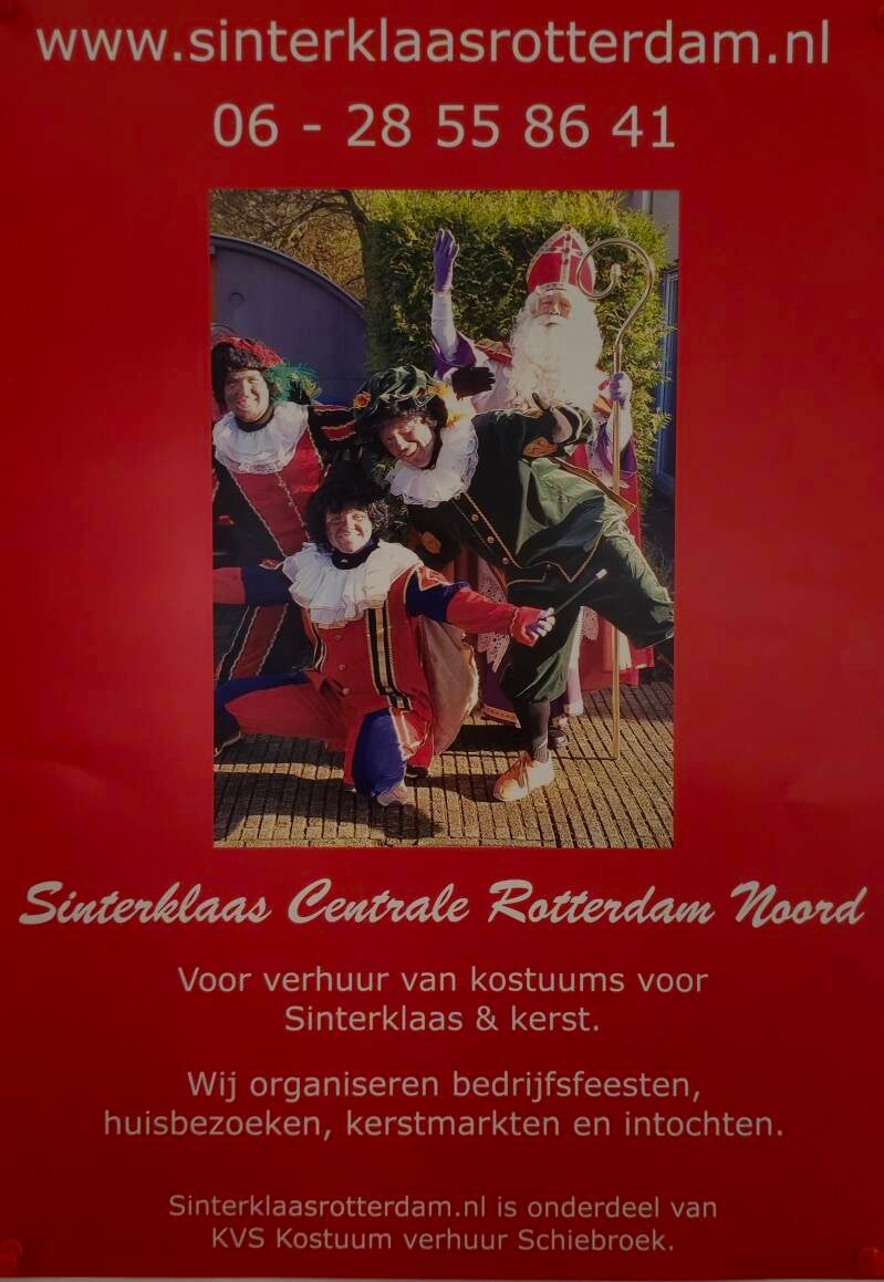 A13 richting Rotterdam Afslag 11 Rotterdam airport (Zestienhoven) N209 rijd richting Bergschenhoek, Bleiswijk, Hillegersberg houdt na 4,1 km rechts aan, sla boven op het viaduct rechtsaf, volg de weg en neem de rotonde 3/4 (3e afslag) volg de weg. Volg de borden Industrieterrein Schiebroek. Op de Ratelaarweg rij je het industrieterrein op, je passeert het tuincentrum, de eerste straat links is de DOVENETELSTRAAT. Aan je linkerhand staat het bedrijfsverzamel gebouw, waar Sinterklaas zijn tijdeijke onderkomen heeft.