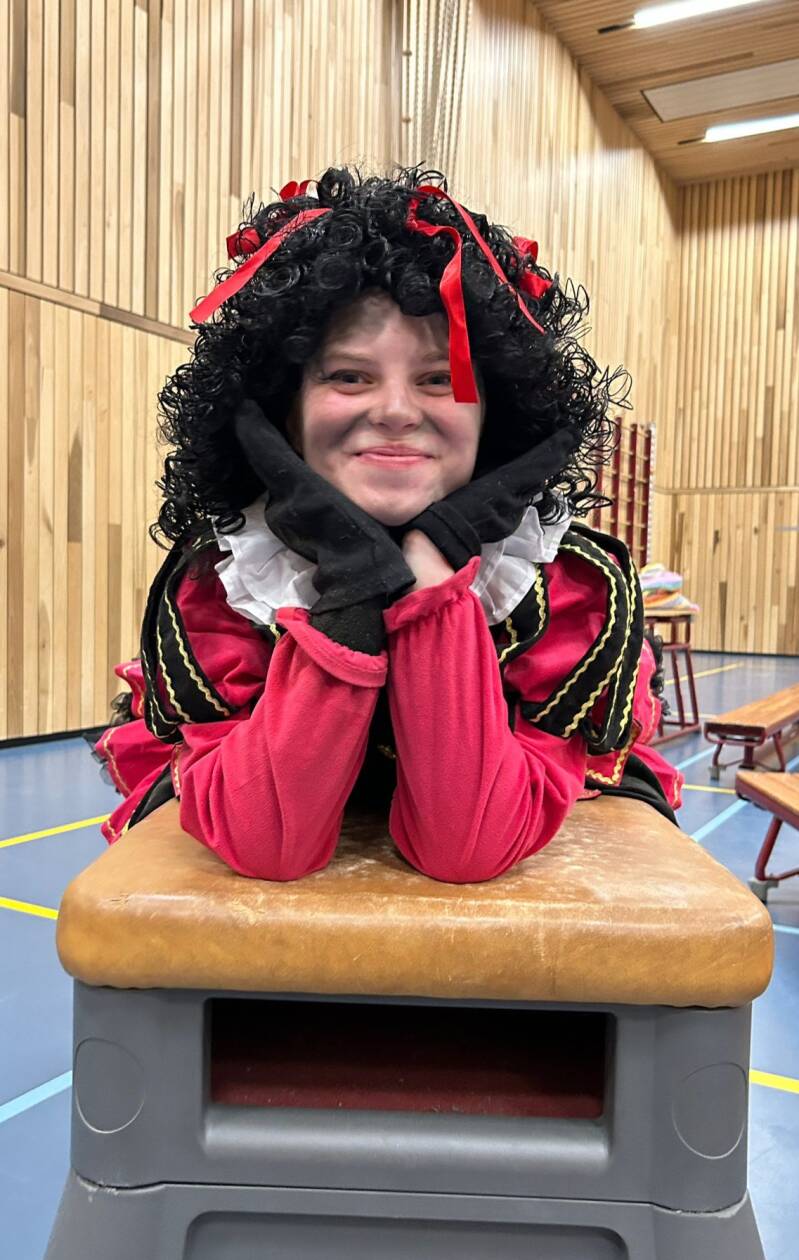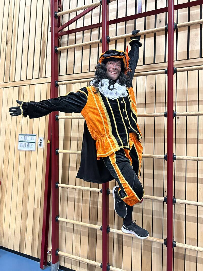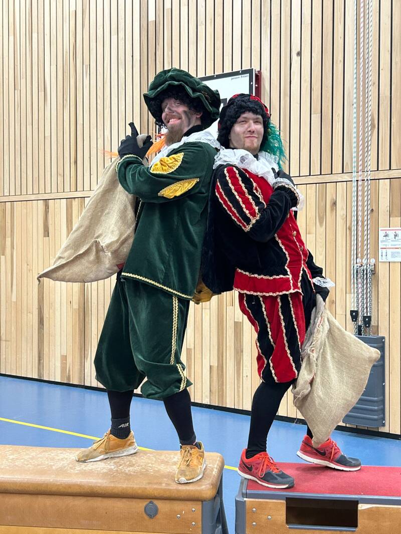 Pieten kom je overal tegen! Dus ook in gymzaal ergens in 16-Hoven. Blijven ze lekker fit.....